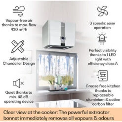 Klarstein Kronleuchter L Island Exhaust Hood 60cm Exhaust Air: 590m³ / H LED Touch White
