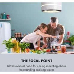 Klarstein Tron Ambience Island Cooker Extractor Hood Ø38cm Recirculation 540m³ / H LED White