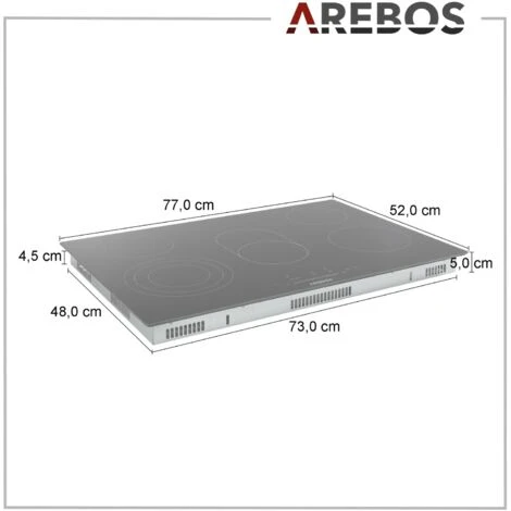 The surface of the hobs from AREBOS are made of glass ceramic, which can be wiped easily with a moist cloth. Heavier staining can be removed with the scraper included in the delivery scope.