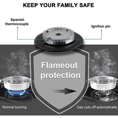 Rapid BurnerThe 2.4kW rapid burner design make the firepower more even, efficient and powerful, which can meet a variety of cooking demand. Such as simmer, braise, fry, stir-frying, roast, steaming, boil, melting or caramelizing. | Flameout ProtectionEach burner is equipped with a thermocouple flame-out system (FFD). Gas will shutoff automatically if a flame is not detected, avoiding risk of gas leakage. | Cast Iron TrivetThe heavy cast iron trivet is strong and steady to support all cookwares. It also can be cleaned in the dishwasher for hassle-free, effortless cleaning and maintenance to enhance the premium look. | Plastic Metal Composite KnobThe knob is made of plastic metal composite material, which is stylish and easy to clean, what’s more, it can also withstand high temperatures, durable to last. It needs to press the knob slowly then rotate, which can prevent accidental touching to protect your family safety well, especially for children. |