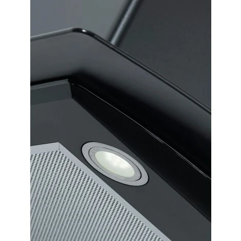 The elegant black curved glass finish gives this 60cm curved glass cooker hood its stylish touch.