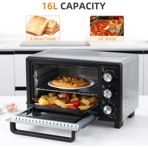 HOMCOM Mini Oven 16L Countertop Oven W/ Adjustable Temperature Timer 1400W