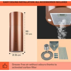 Klarstein Beretta, Island Extractor Hood, Ø 35 Cm, Exhaust / Circulating Air, 650m³ / H, LED, Copper