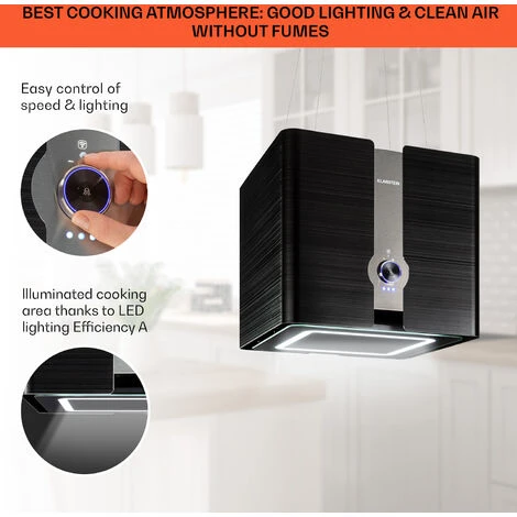 Back to the future: The Klarstein Futurelight Smart island extractor bonnet adds elegant glamour to the kitchen and frees it from steam and odours via app or gesture control. The cooker bonnet operates in a smart way by using the Klarstein app to control it. No matter where you are, you can use your smartphone or tablet to switch the bonnet on and off and select one of its three power levels. They eliminate fumes and odours with a recirculation rate of up to 420 m³/h. The integrated white LED light ensures a perfect view of the pots and pans. And if you don’t have your mobile phone at hand, a simple wave is enough to tell the gesture control what you want. Smart, classy and clean air: the Klarstein Futurelight cooker bonnet represents the future in the kitchen.