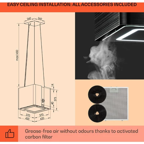 - 1 x cooker hood with pre-installed grease filter