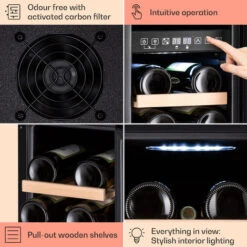 IMPECCABLE 17 BOTTLE COLLECTION: House up to 17 bottles of your best and finest wines on four removable wooden bays with this 52 L wine cooler. Temperature controlled wine fridges help preserve flavours and aromas, keeping wines fresher for longer.