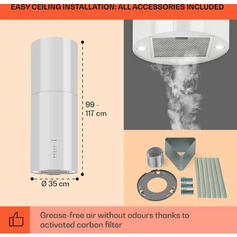 QUICK, STRESS-FREE SET-UP: Step by step assembly instructions ensure a quick installation that’s as easy as following a recipe. This extractor fan for kitchen islands comes with all accessories including a mounting plate for a fast installation.
