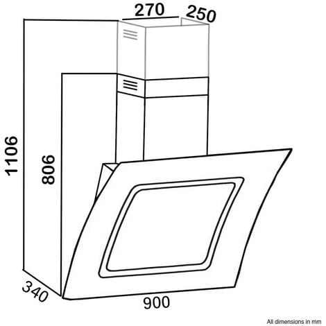 SIA 90cm Touch Control Black Angled Curved Glass Cooker Hood Kitchen Extractor