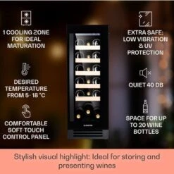 Klarstein Vinovilla 20 Built-In Wine Fridge 50l / 20 Bottles Glass Door Stainless Steel